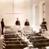 The production of the salt was – and still is – a technological challenge. Thermal water was transported through a 1,600-meter pipeline directly to the saltworks (located near the former city marketplace in the town center). There, large evaporation units transformed the water into concentrated brine and subsequently into powdered or crystalline salt.